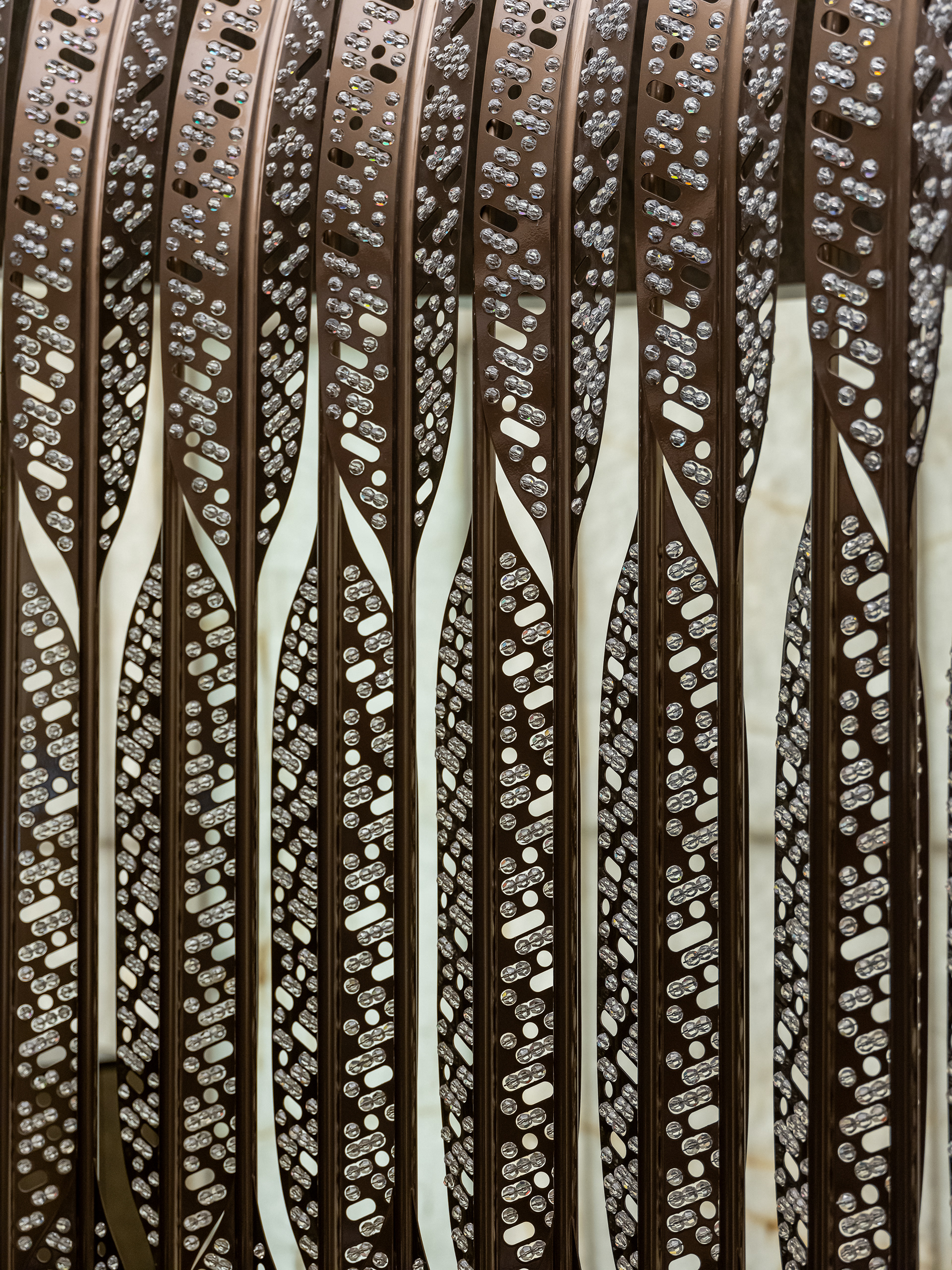 Veil of Crystal is a mesmerising sculptural waterfall at the reception desk of the Compass Rose restaurant. 3D laser-cut leaves shaped from metal and sparkling with thousands of crystal beads intertwine to create a nostalgic crystal canopy. The impressive structure adheres to strict maritime requirements, giving it a rattle-free character.